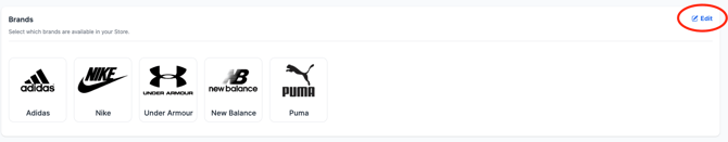 To remove certain brands from being available in your Store select 'edit' from the brands section.