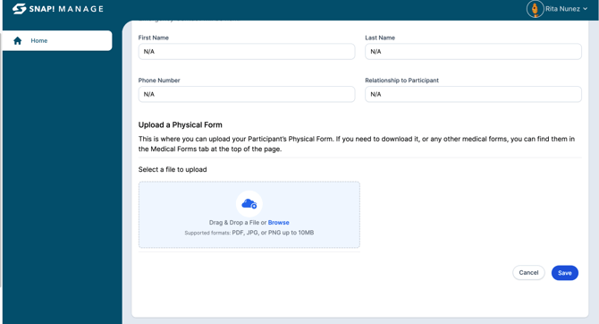 - Click the blue Edit Participant to upload a physical.
